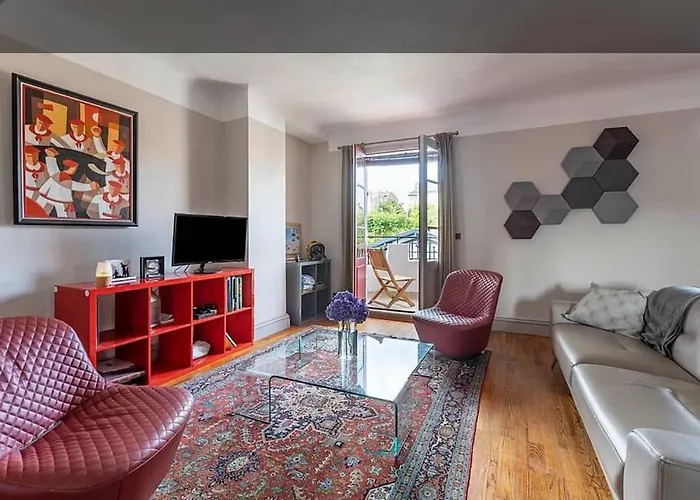 تقع شقة Exceptionnel 3 Pieces Art Deco En Dernier Etage Avec Garage Prive Centre Biarritz المكونة من 1 غرفة نوم على بعد نحو 500 متر من Biarritz Town Hall وتطلّ على المدينة. الشقة تقع في منطقة مركزية على مسافة 2.5 كم من هال دي إيراتي.